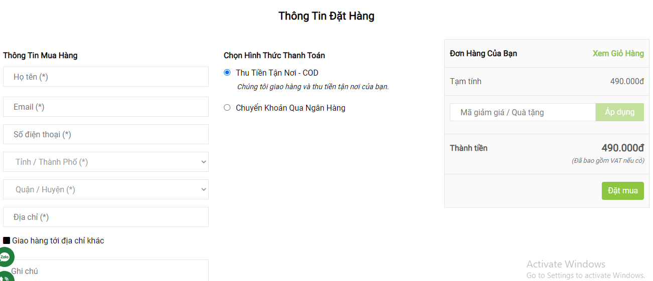 Bước 6: bấm vào nút Đặt hàng sau khi hoàn tất bước 5